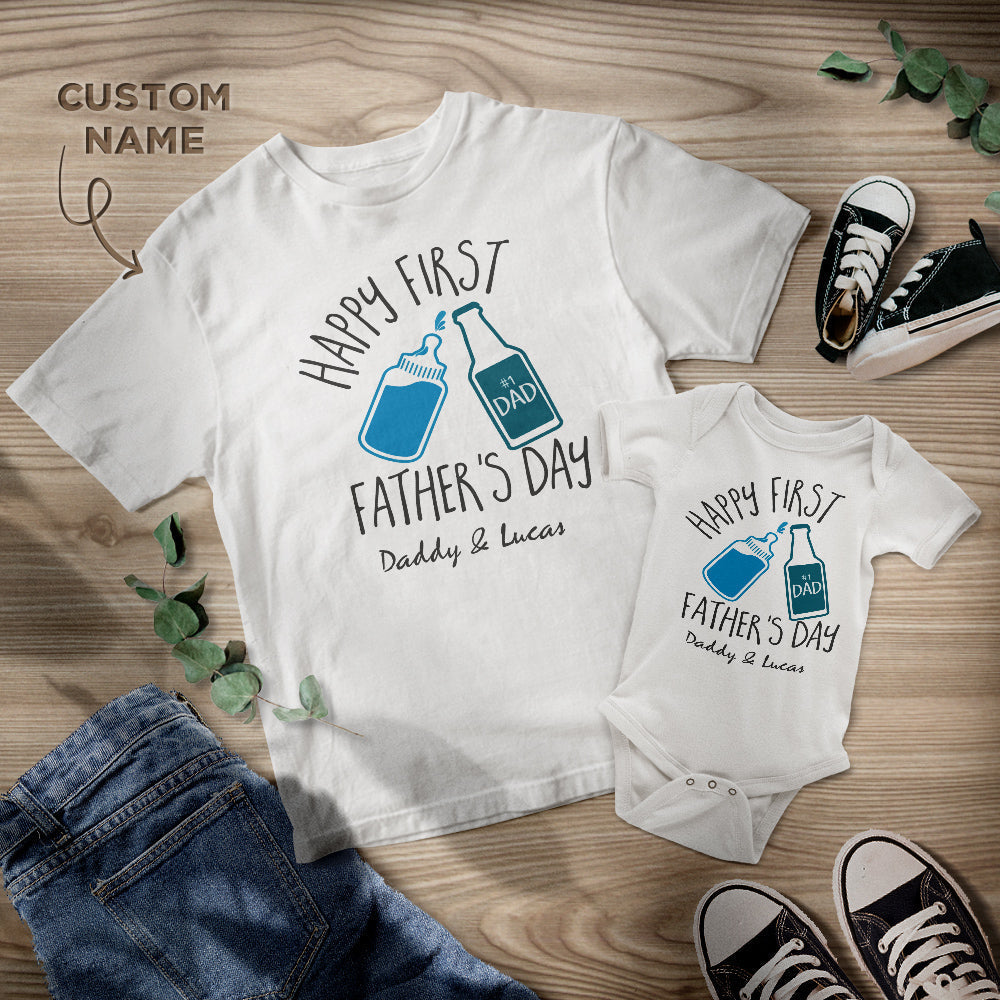 Custom Name Shirt Our First Father's Day Together Gifts For Dad Baby Bottle Daddy And Baby Matching Outfits