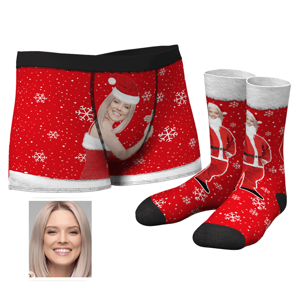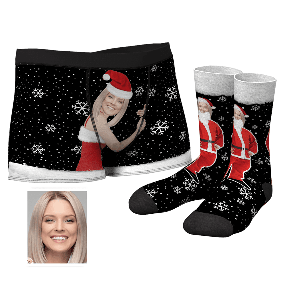 Christmas Gifts Men's Custom Face on Sexy Girl Body Boxers And Crew Socks Set