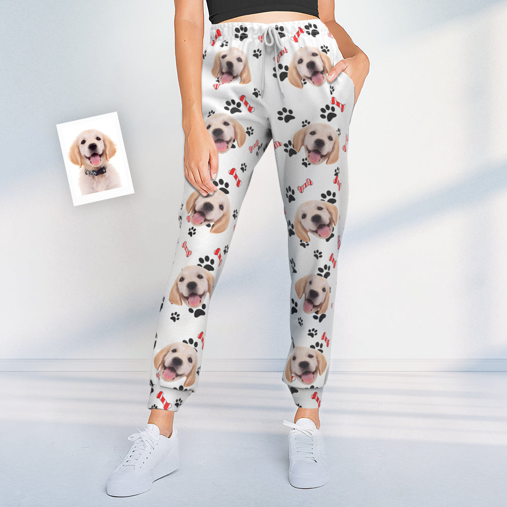 Custom Dog Face Sweatpants Unisex Joggers with Heart Pattern Paw