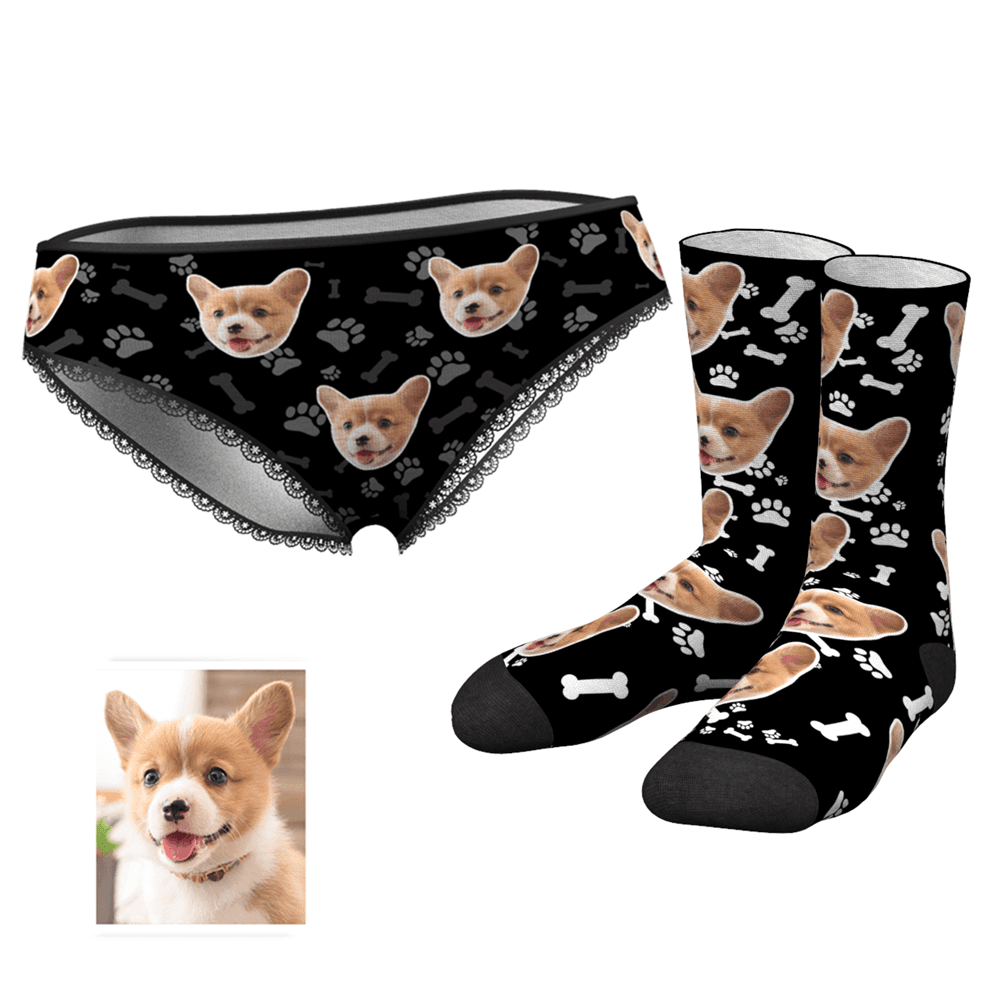 Custom Face Womens Panties-Dog Claw And Crew Socks Set