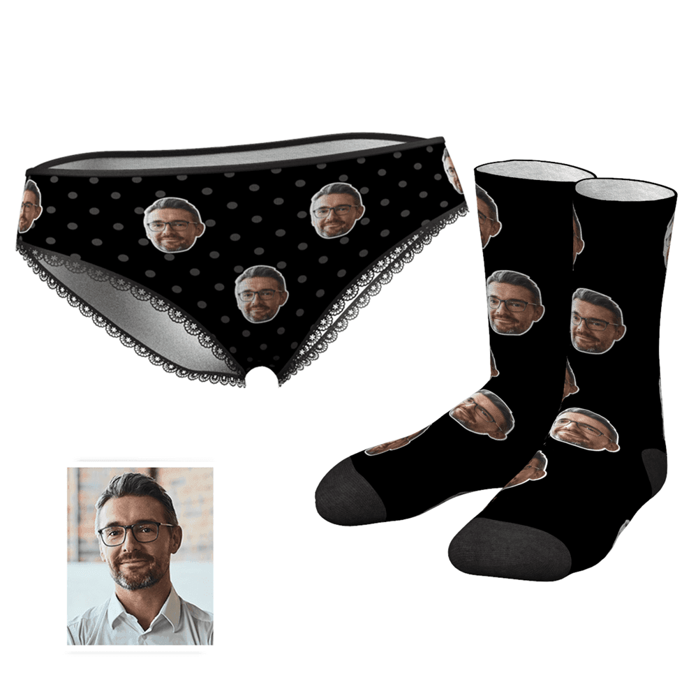 Women's Custom Face Thong Panty - Lover And Crew Socks Set