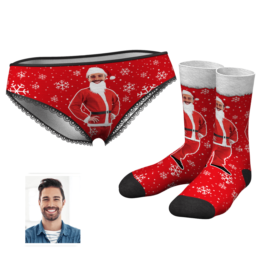Women's Snowflake Panties Face on Santa Claus's Body And Crew Socks Set