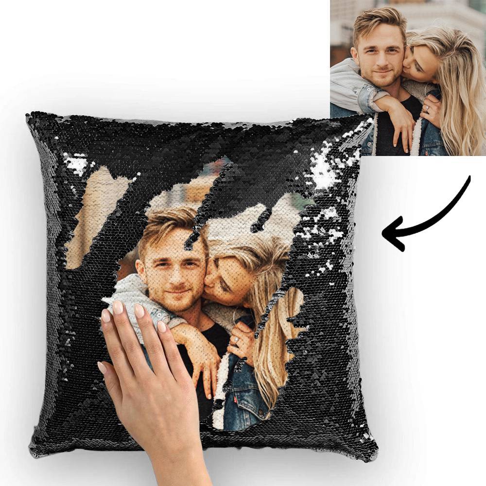 Valentine's Day Gift for Her Custom Photo Magic Sequins Pillow Multicolor Shiny 15.75''*15.75''