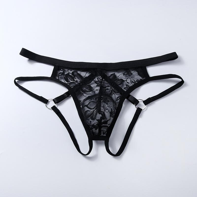 3pcs Men's Sexy Thongs with Metal Rings See Through Low Rise One Size Underwear
