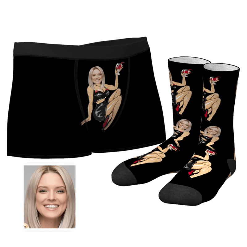 Christmas Gifts Men's Custom Face on Sexy Girl Body Boxers And Crew Socks Set
