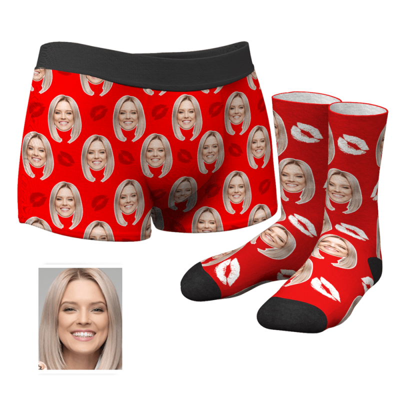 Kiss Couple Men's Custom Face Boxer Shorts And Crew Socks Set