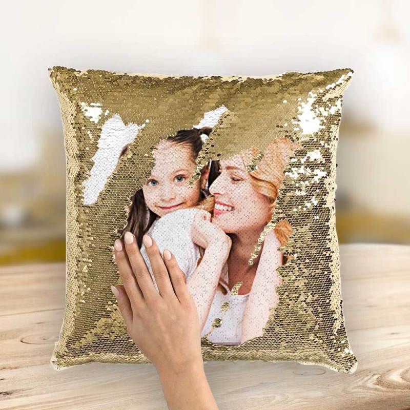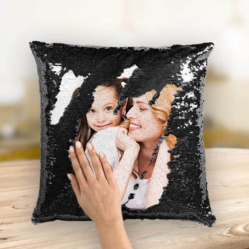 Mother's Day Gifts Couple Photo Personalised Magic Sequins Pillow Multicolor Shiny 15.75''*15.75'' - For Mom