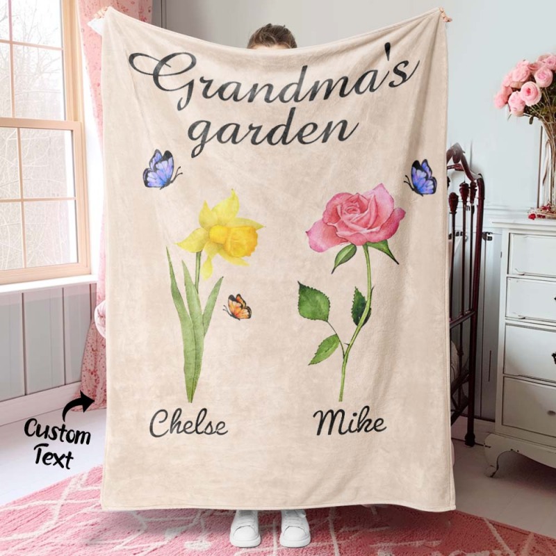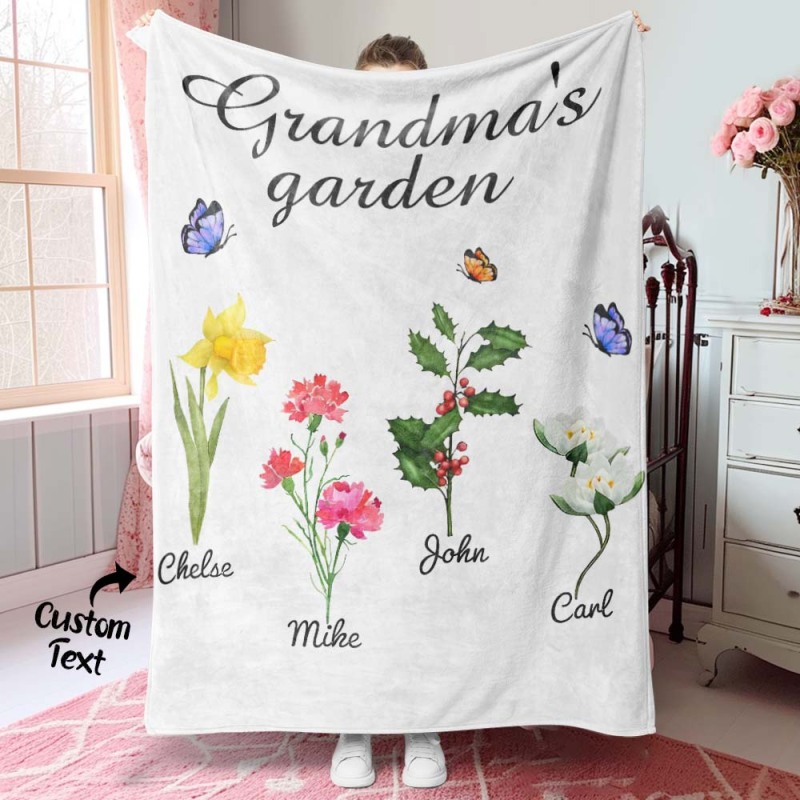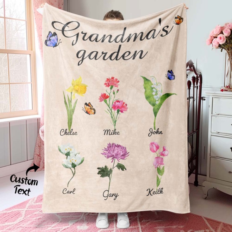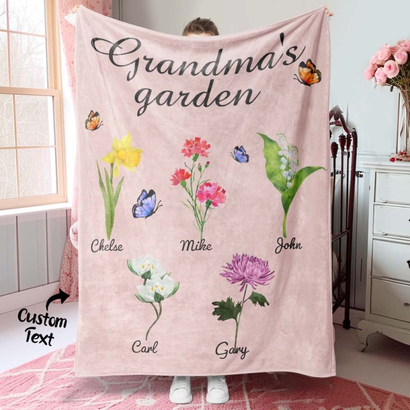 Custom Birth Month Flower Blanket Grandma's Garden Children's Names Meaningful Gifts For Mom