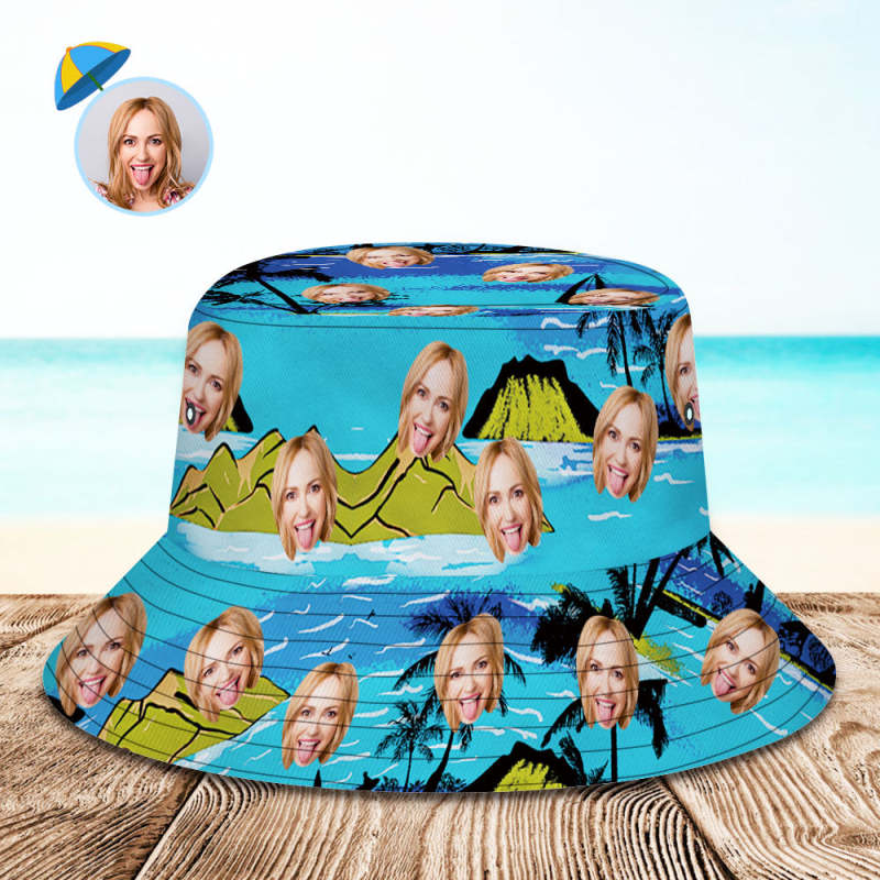 Custom Bucket Hat Personalized Face All Over Print Tropical Flower Print Hawaiian Fisherman Hat - Vice City