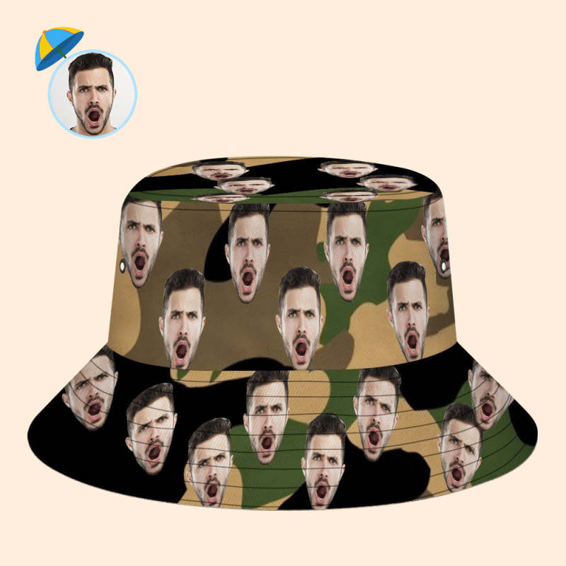 Custom Bucket Hat Unisex Face Bucket Hat Personalize Wide Brim Outdoor Summer Cap Hiking Beach Sports Hats Camouflage Bucket Hat Gift for Lover