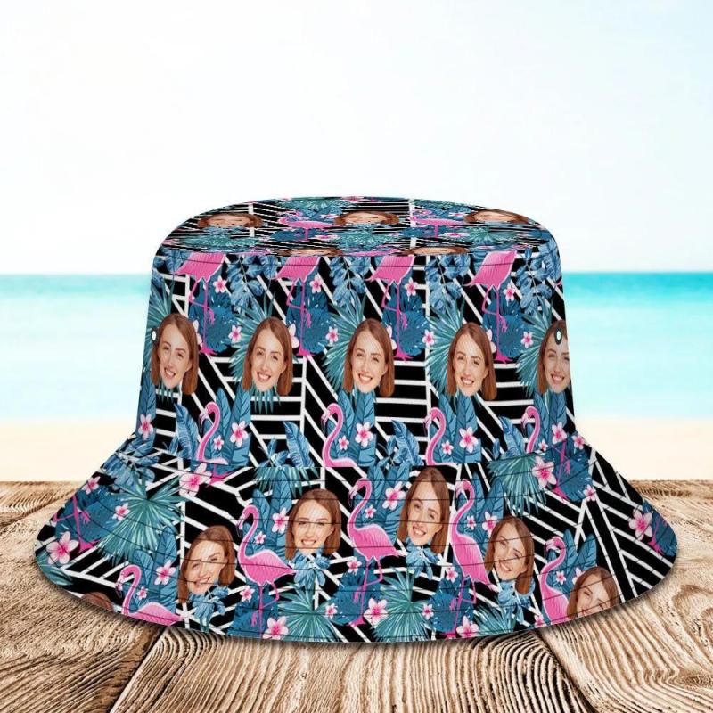 Custom Bucket Hat Unisex Face Bucket Hat Personalize Wide Brim Outdoor Summer Cap Hiking Beach Sports Hats Gift for Lover - Flamingo