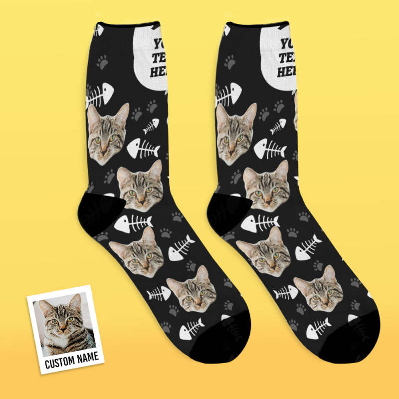 Custom Cat Happy Socks With Your Text