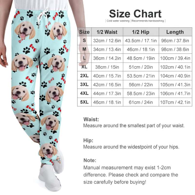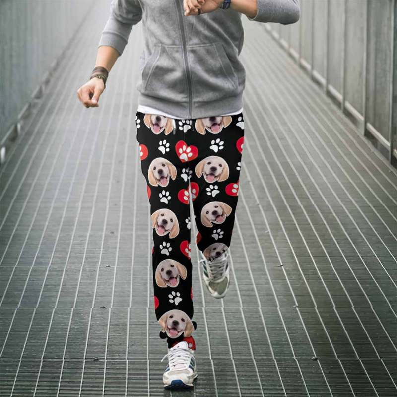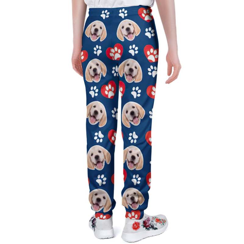Custom Dog Face Sweatpants Unisex Joggers with Heart Pattern Paw