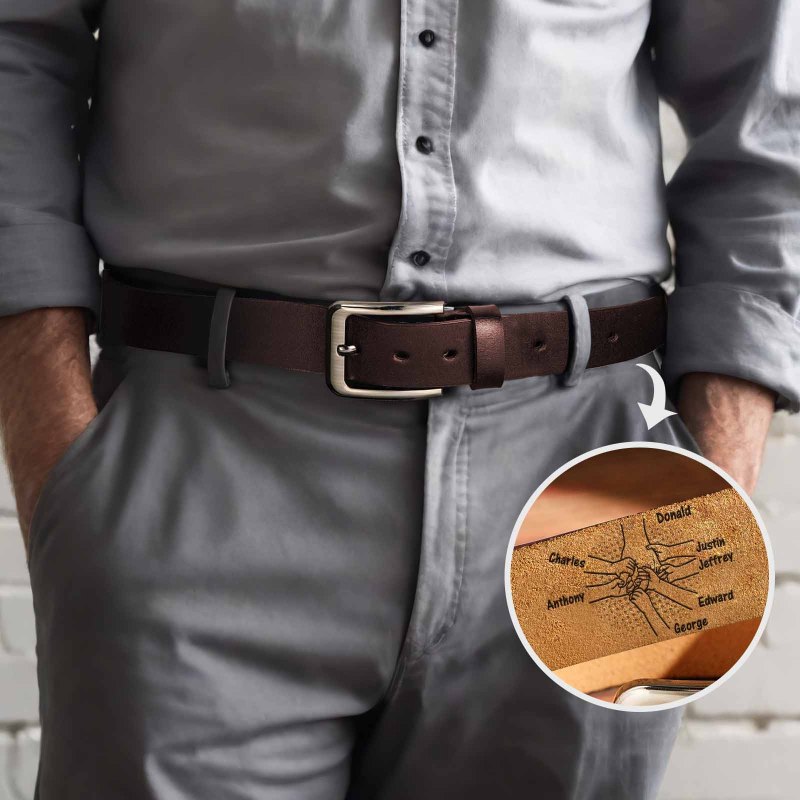 Custom Engraved Leather Belt Personalized Names Belt Hand in Hand Gifts for Dad