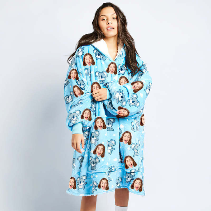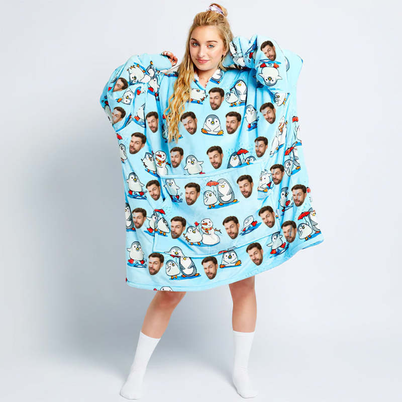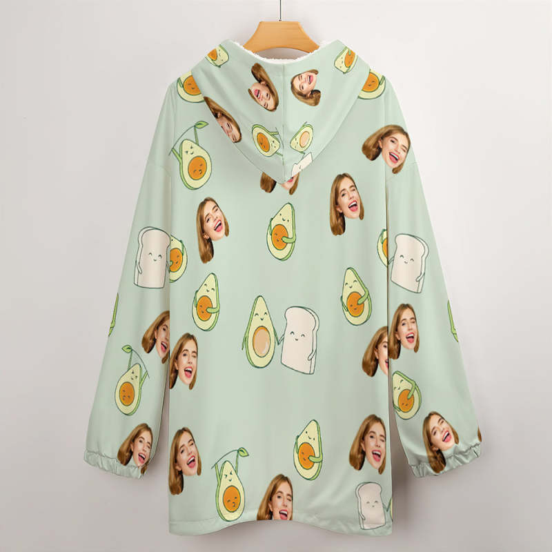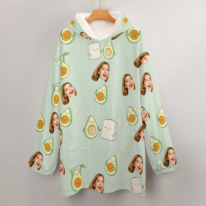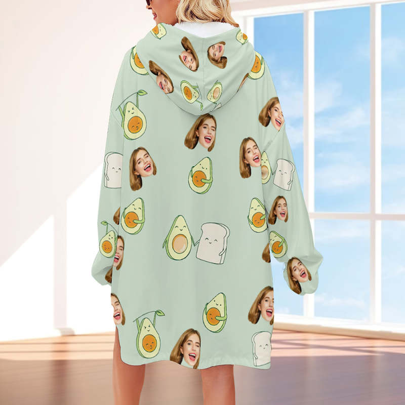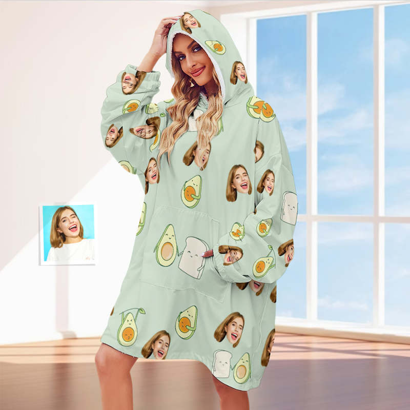 Custom Face Adult Blanket Hoodie Personalized Blanket Pajama Gift for Women Avocado