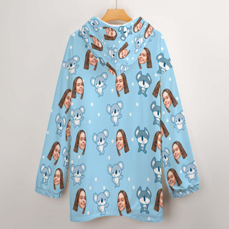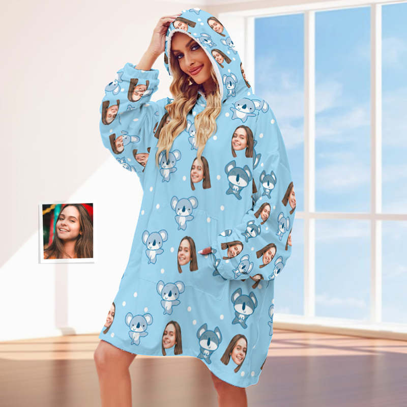 Custom Face Adult Blanket Hoodie Personalized Blanket Pajama Gift for Women Koala