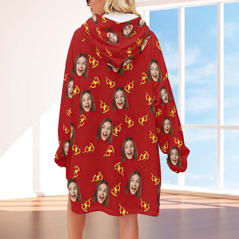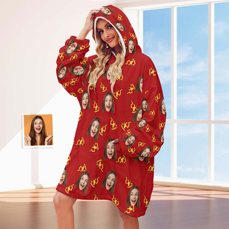 Custom Face Adult Blanket Hoodie Personalized Blanket Pajama Gift for Women Pizza