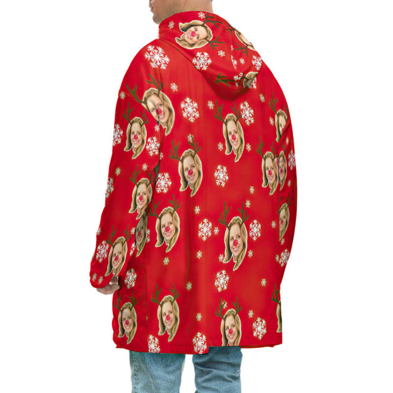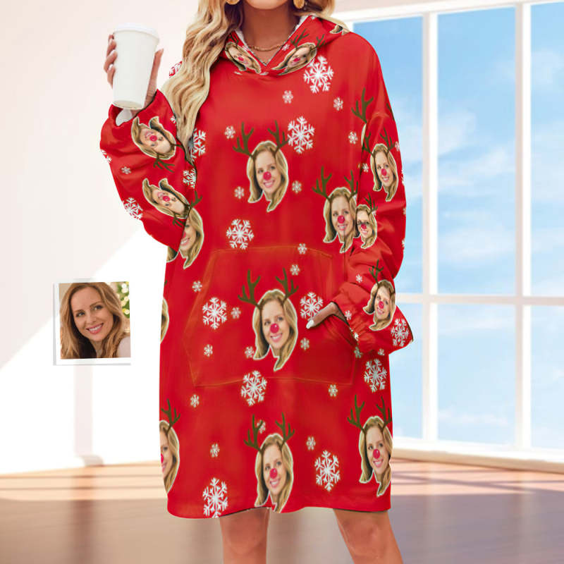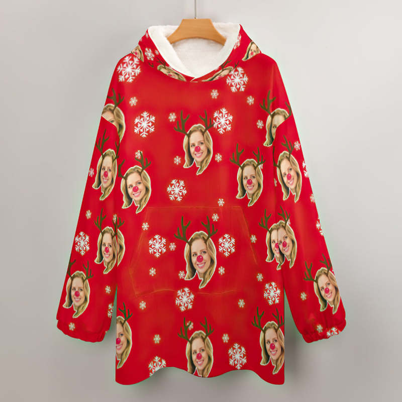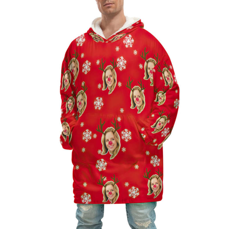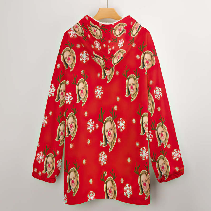 Custom Face Adult Unisex Blanket Hoodie Personalized Blanket Pajama Gift Christmas Elk