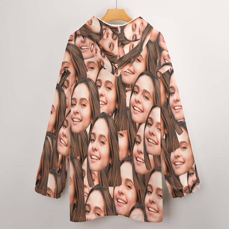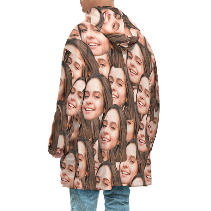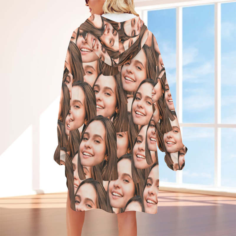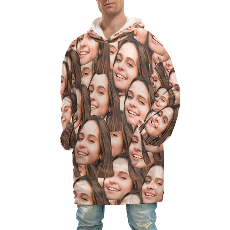 Custom Face Adult Unisex Blanket Hoodie Personalized Blanket Pajama Gift Mash Face
