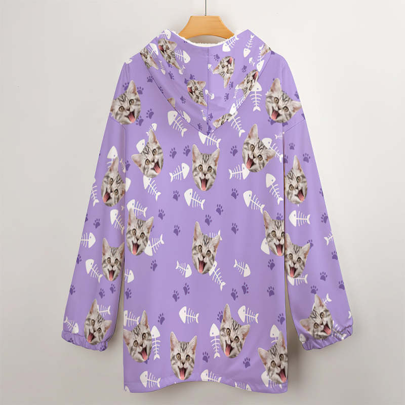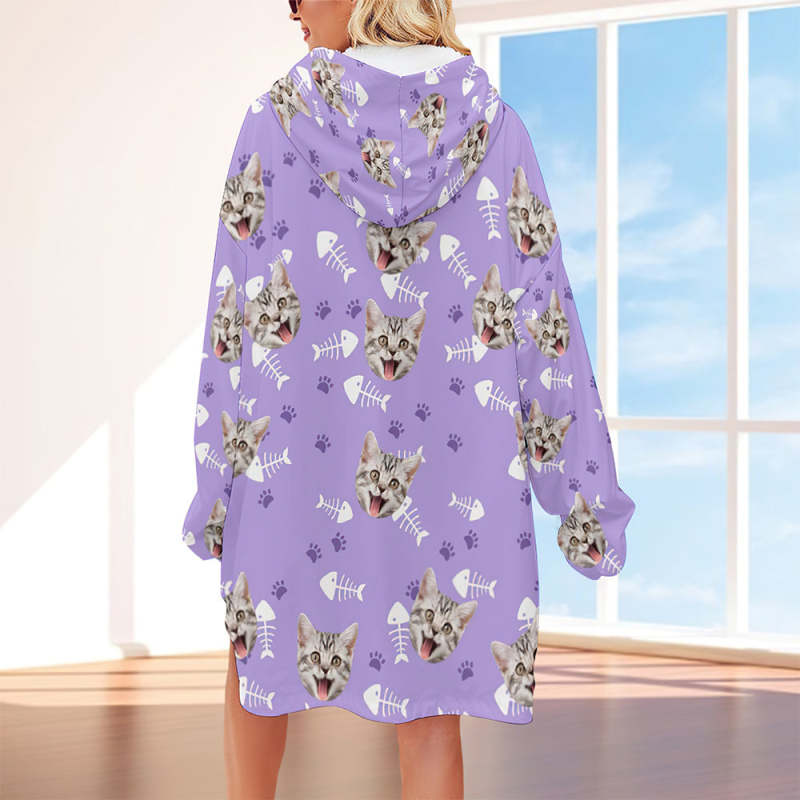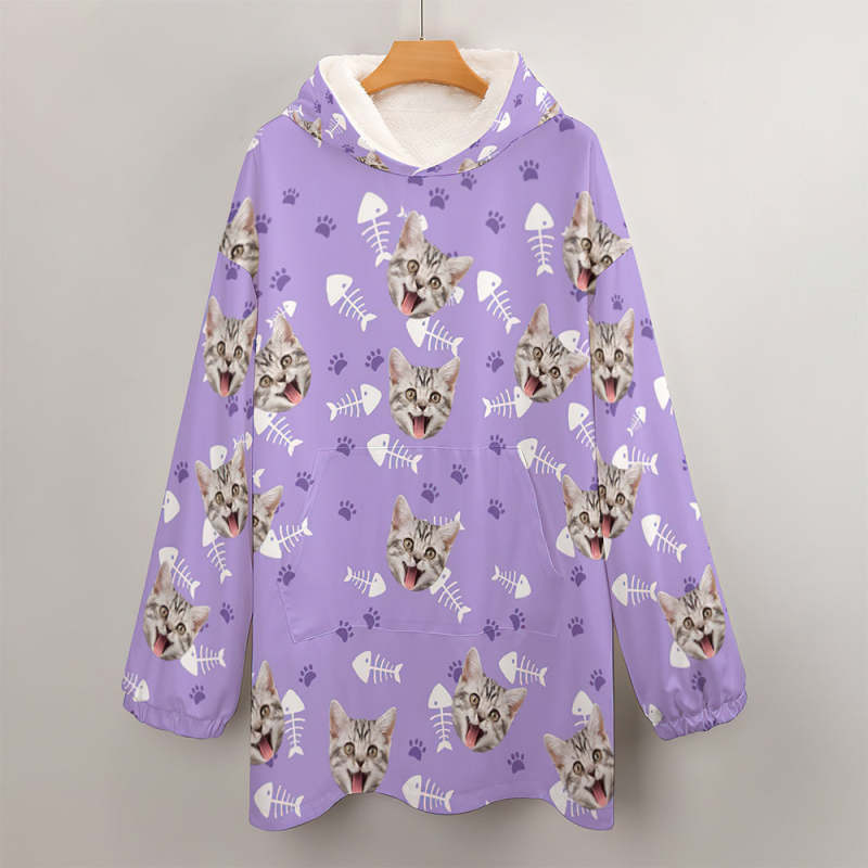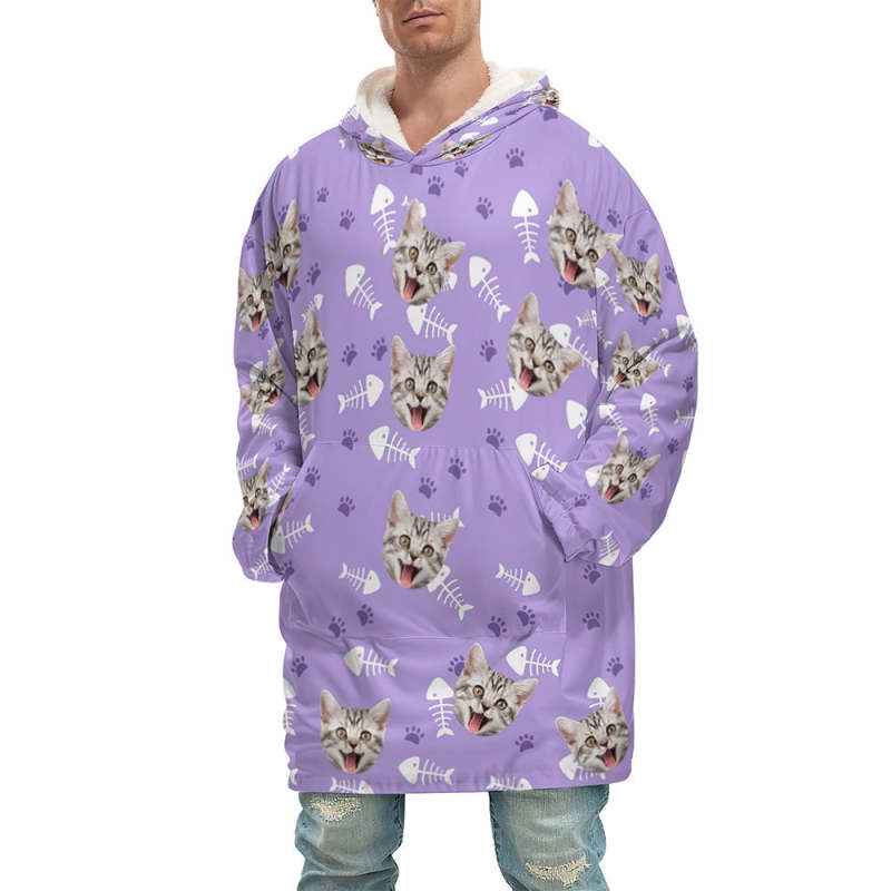 Custom Face Adult Unisex Blanket Hoodie Personalized Blanket Pajama Gift Pet Cat