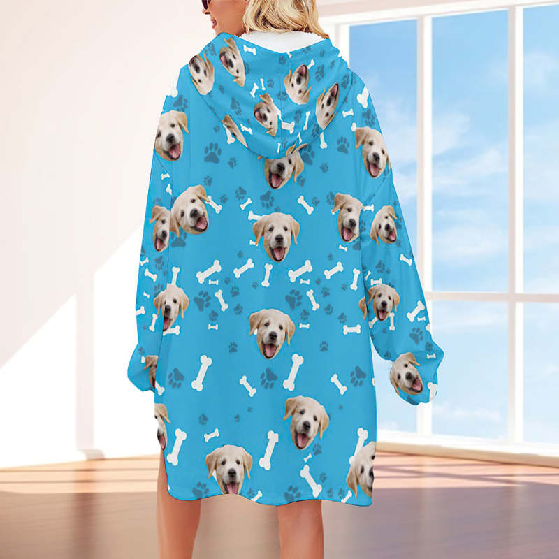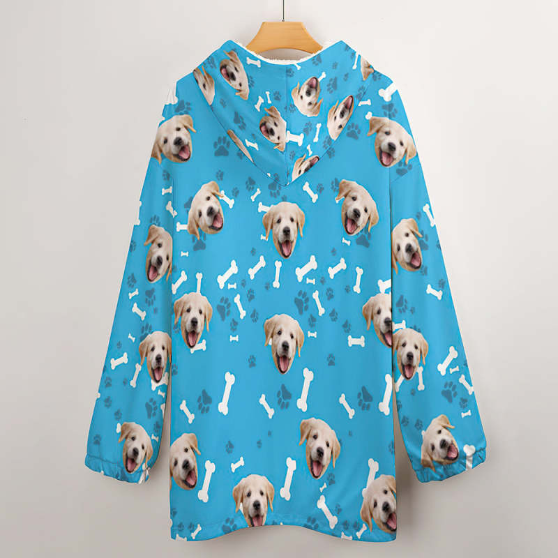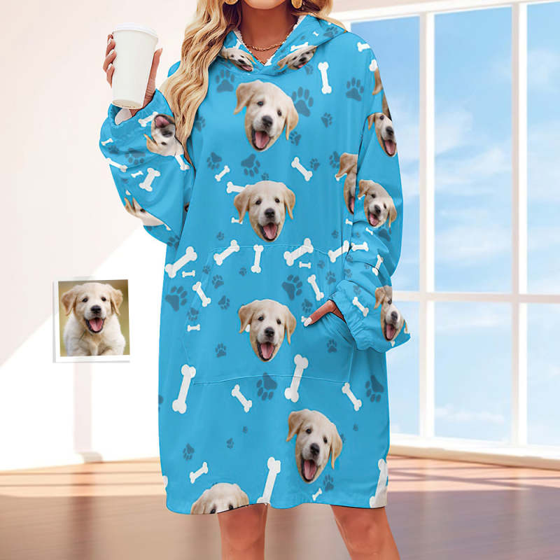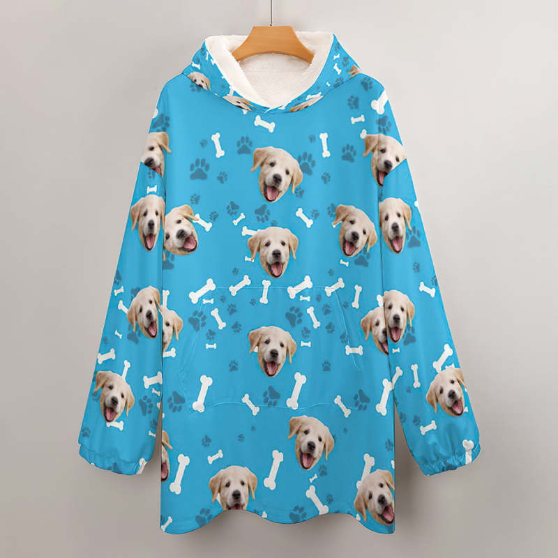 Custom Face Adult Unisex Blanket Hoodie Personalized Blanket Pajama Gift Pet Dog