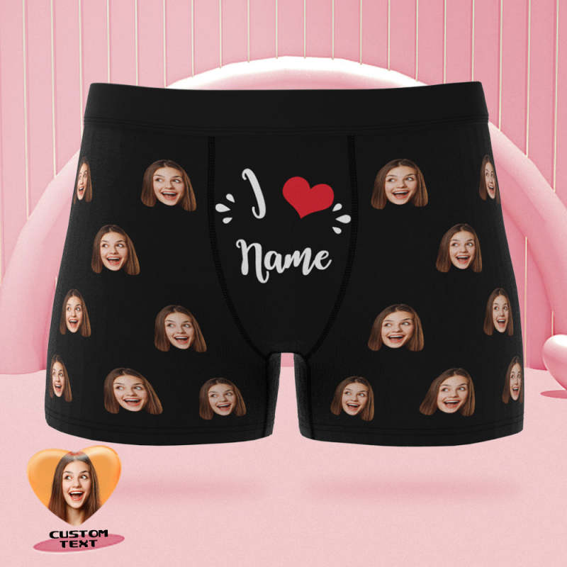 Custom Face Boxer Briefs I Love Name Personalised Naughty Valentine's Day Gift for Him