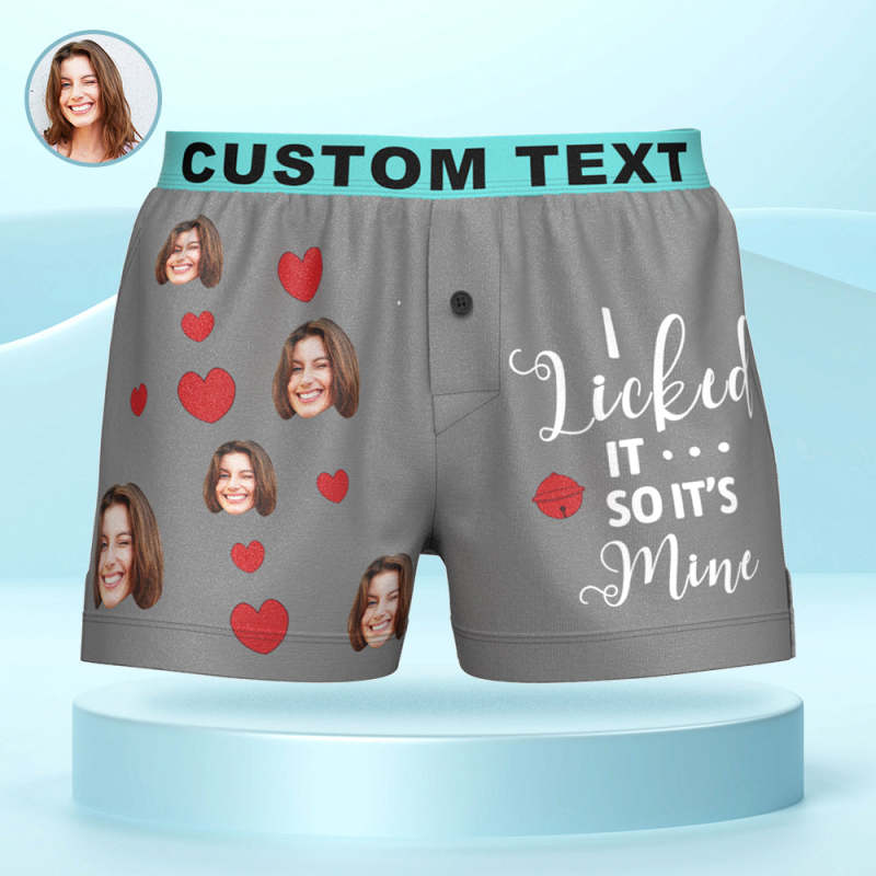 Custom Face Boxer Shorts I LICKED IT Personalized Waistband Casual Underwear for Him