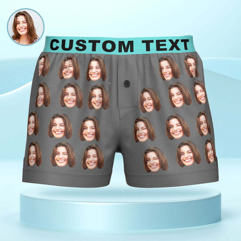 Custom Face Boxer Shorts with Personalized Text on the Waistband Personalized Casual Underwear for Him