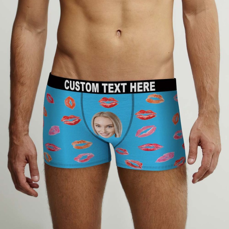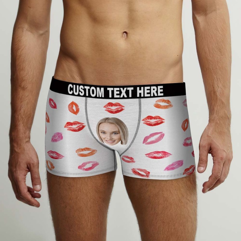 Custom Face Boxers Briefs Colorful Lipstick of Love Personalized Photo Underwear Gift for Him