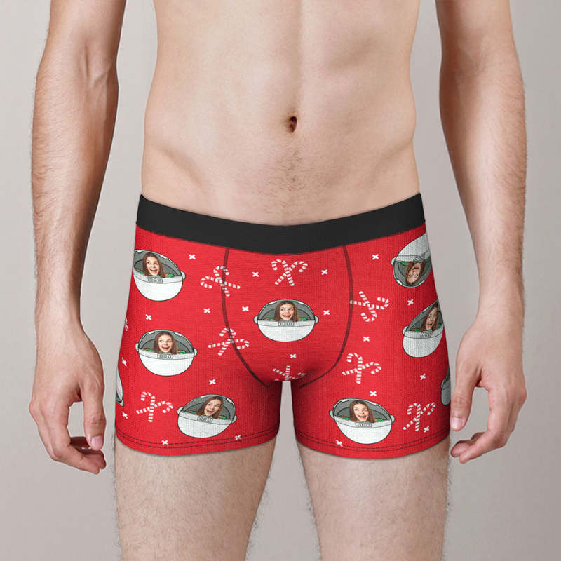 Custom Face Boxers Briefs Personalised Men's Shorts With Photo Christmas Gifts Red