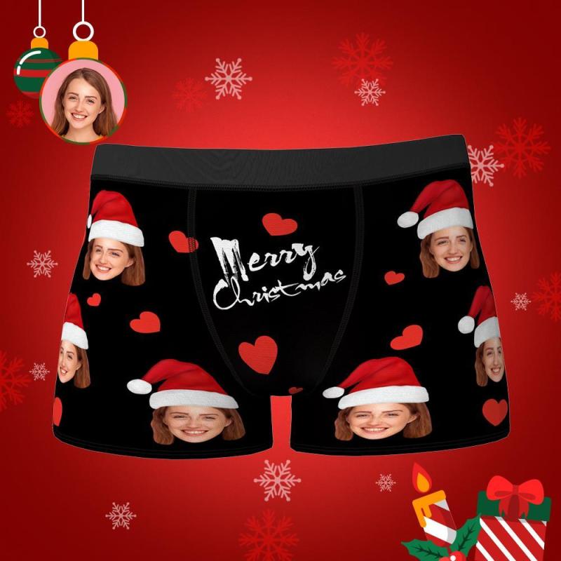 Custom Face Boxers Shorts Personalised Photo Underwear Christmas Gift for Men Merry Christmas