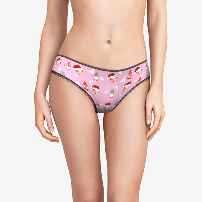 Custom Face Christmas Gnomes Pink Women's Panties Personalised Pink Christmas Gift