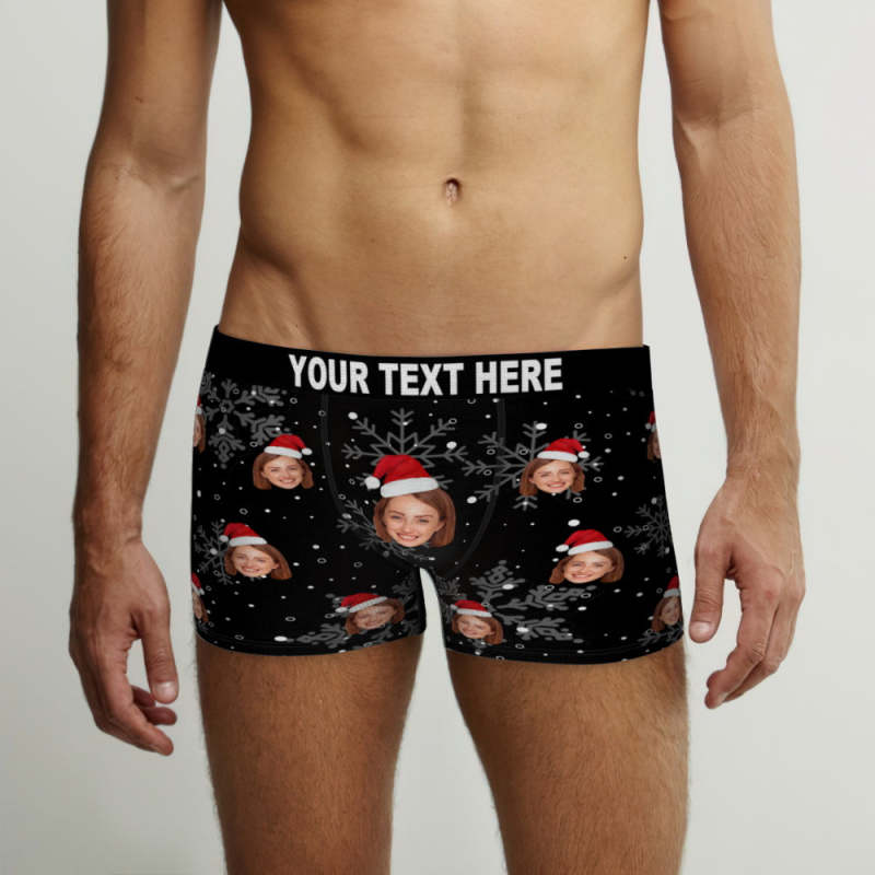 Custom Face Christmas Snowflake Boxer Briefs Funny Personalised Face Underwear Christmas Gift