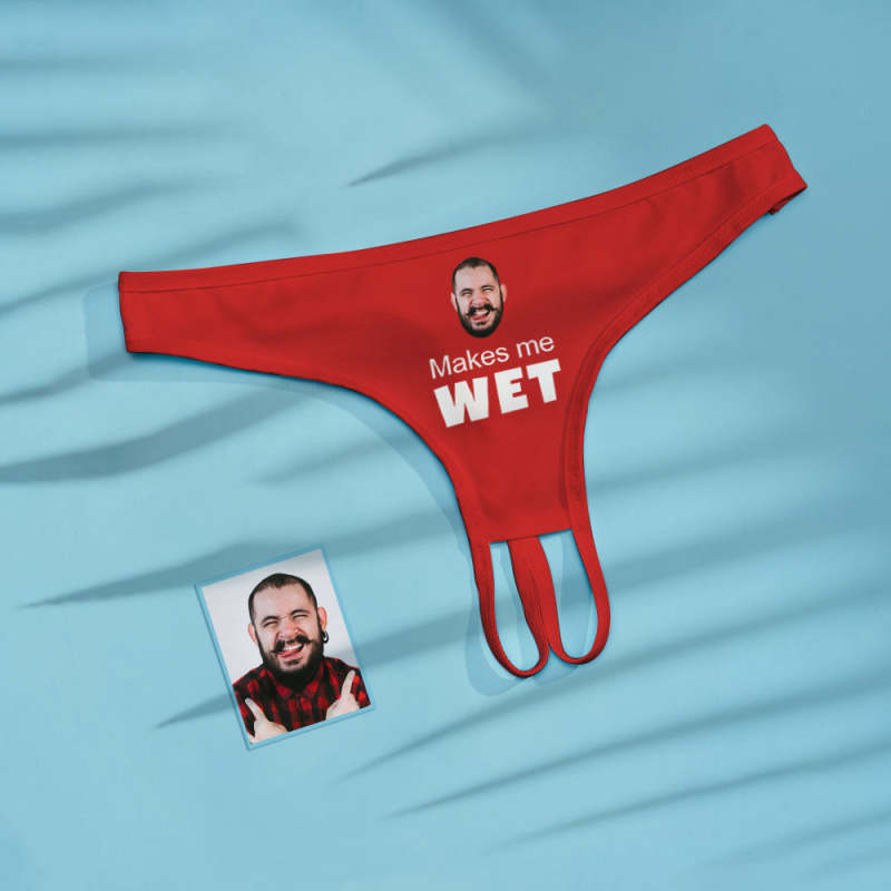 Custom Face Crotchless Panty Makes Me Wet Personalized Open Crotch Lingerie