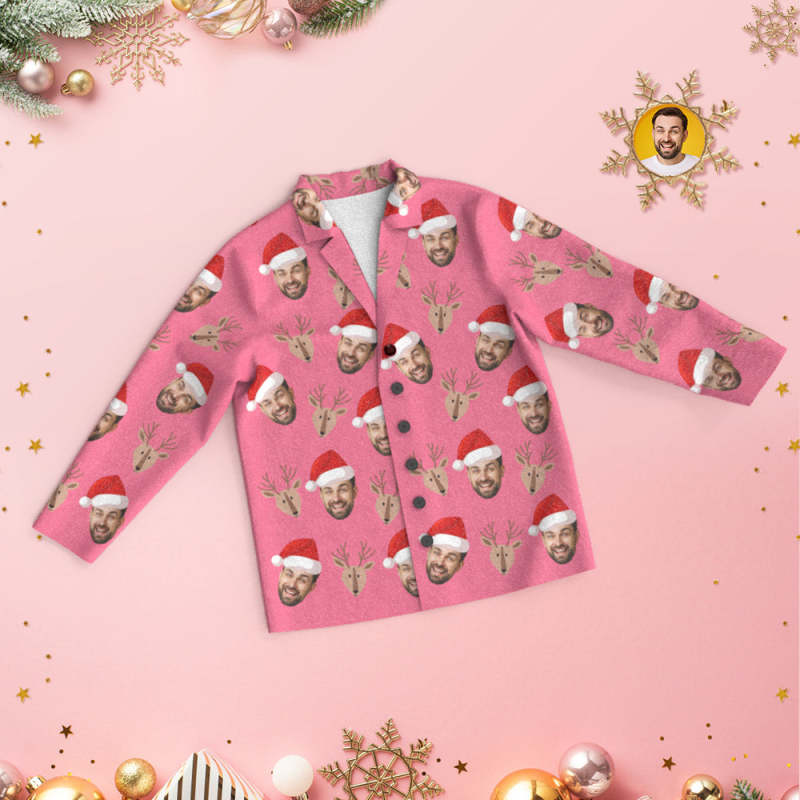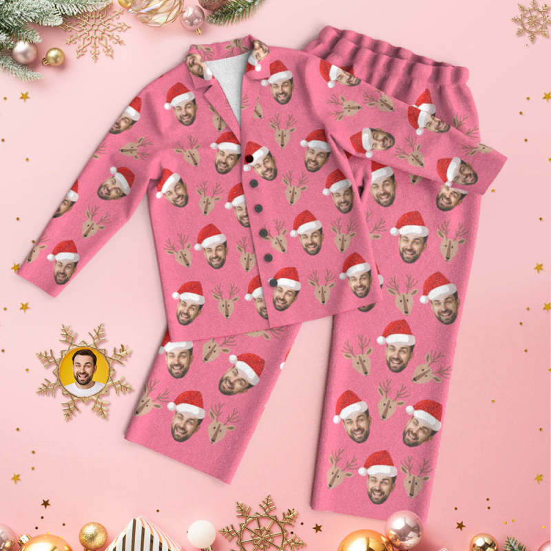 Custom Face Deer Pajamas Personalised Pink Pajamas Women Men Set Christmas Gift
