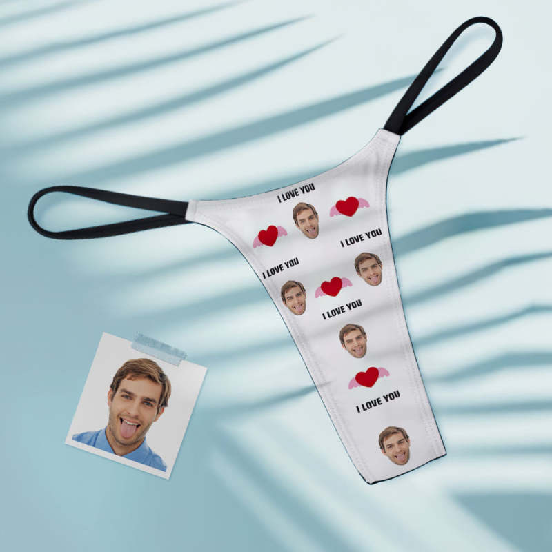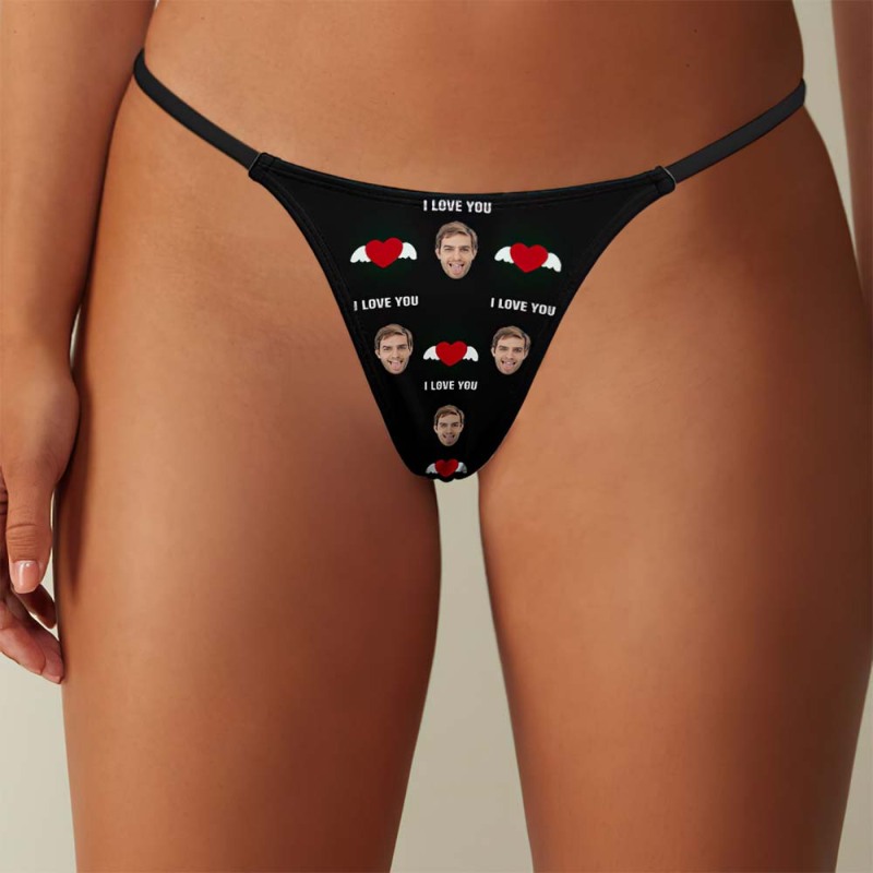 Custom Face Heart with Wings Women's Tanga Thong Gift for Her