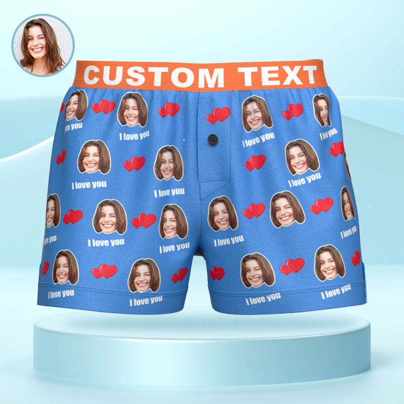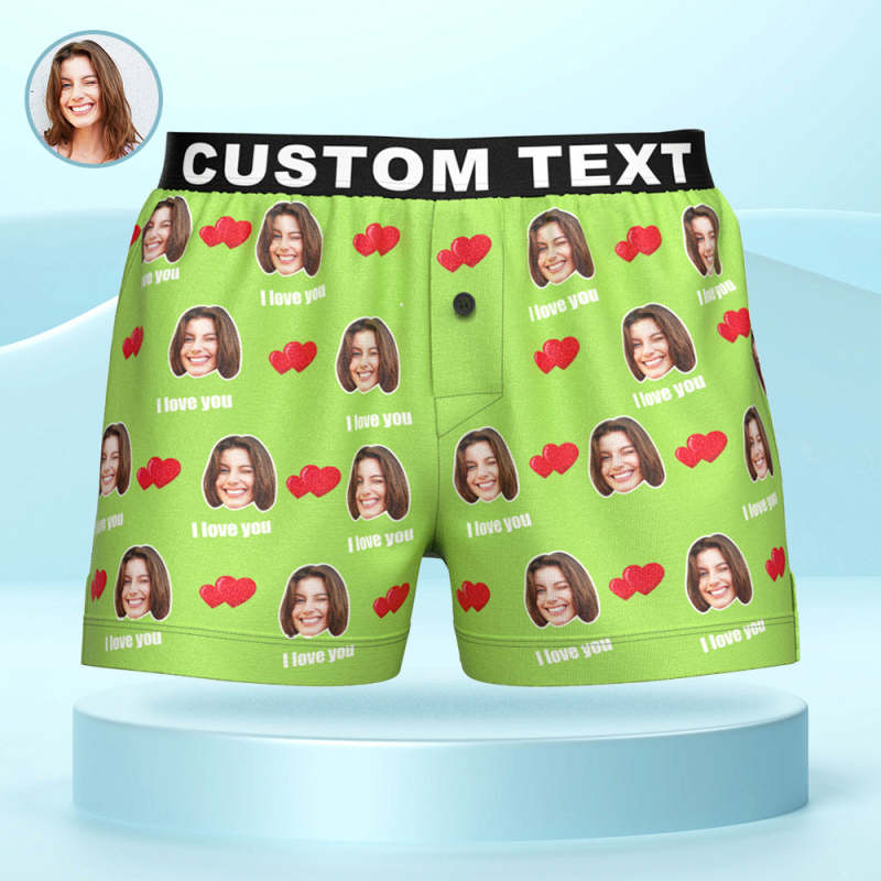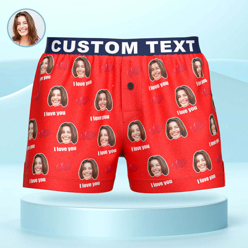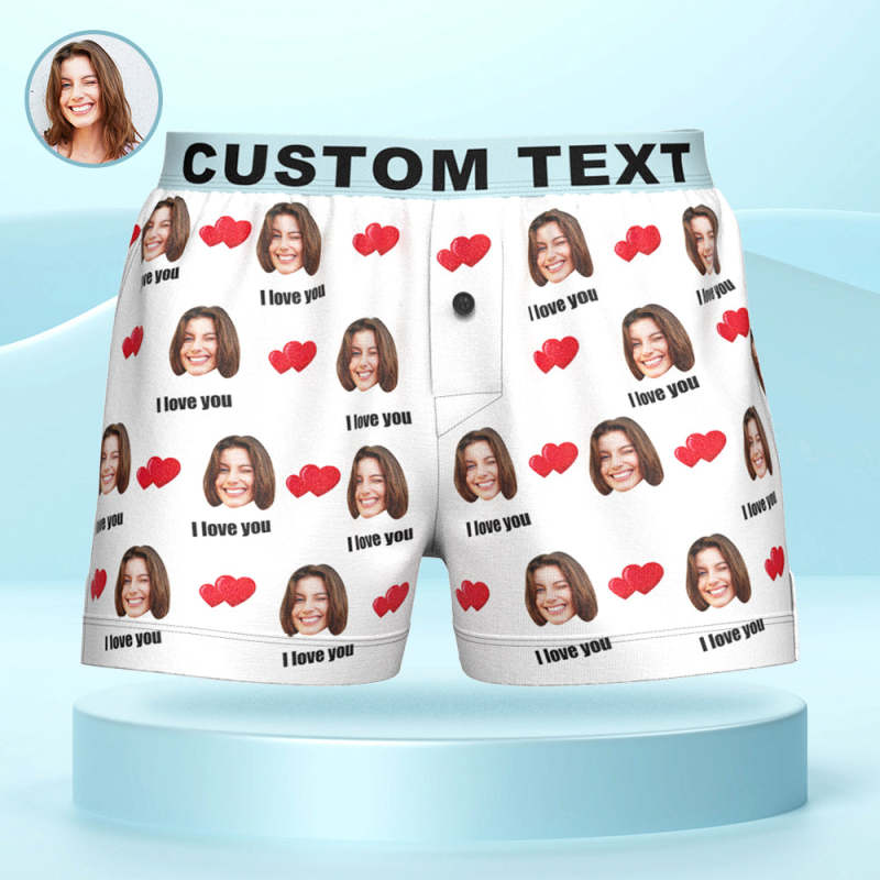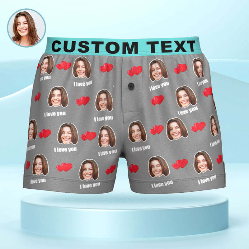Custom Face I Love You Boxer Shorts with Personalized Text on the Waistband Personalized Underwear for Him