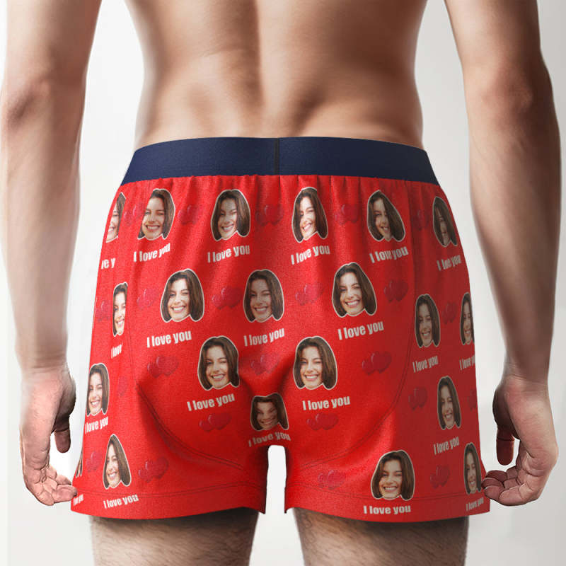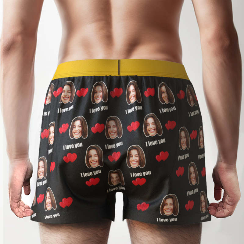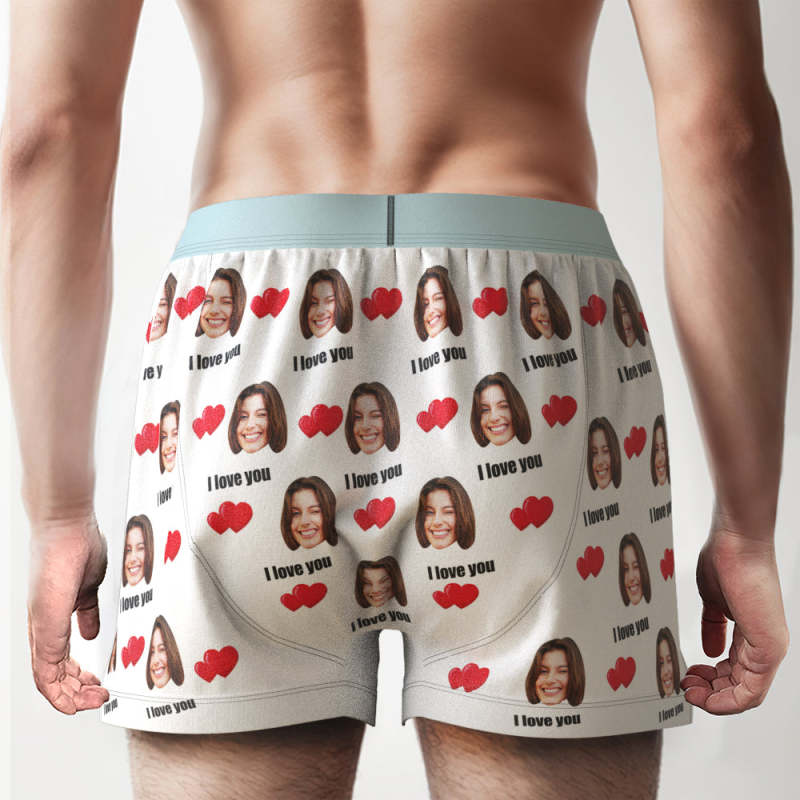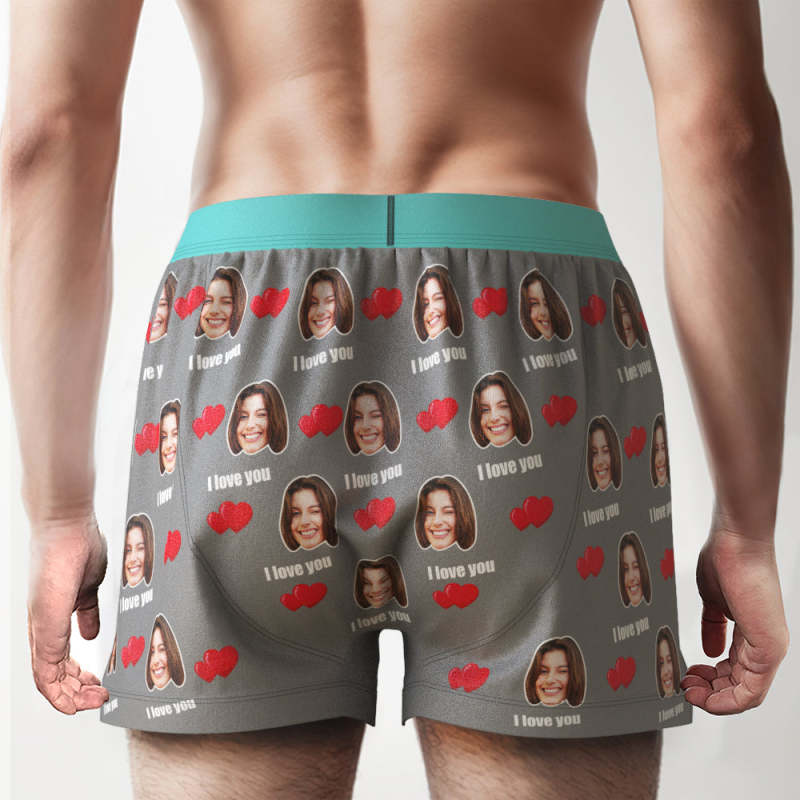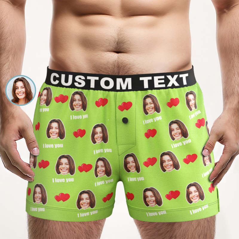 Custom Face I Love You Boxer Shorts with Personalized Text on the Waistband Personalized Underwear for Him