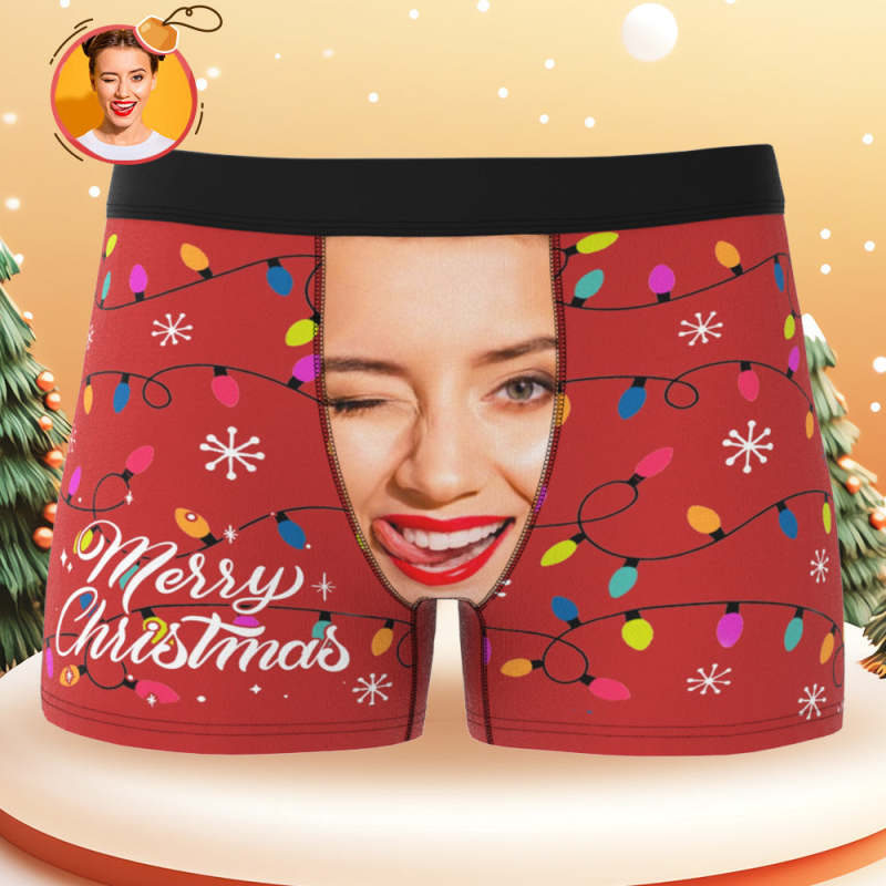 Custom Face Boxer Shorts Personalized Waistband Casual Underwear for Christmas