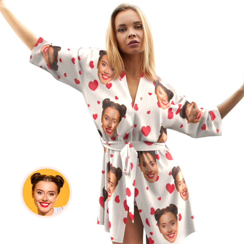 Custom Face Nightgown Cute Heart Print Night Robe Personalized Gift