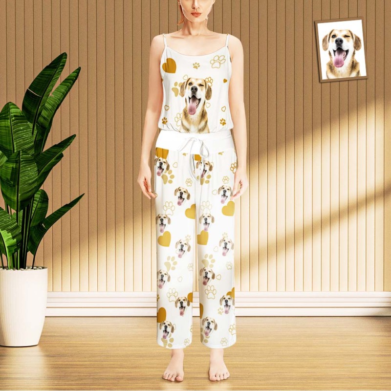Custom Face Pajama Women's Paw Prints Heart Sleepwear