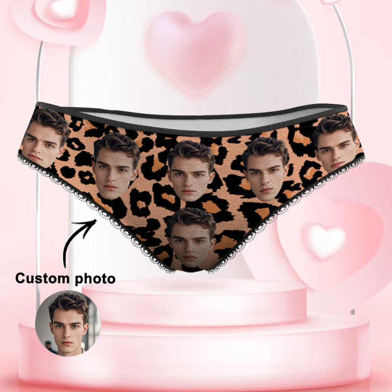 Custom Face Panties Sexy Leopard Personalized Women's Underwear Valentine's Gift for Girlfriend