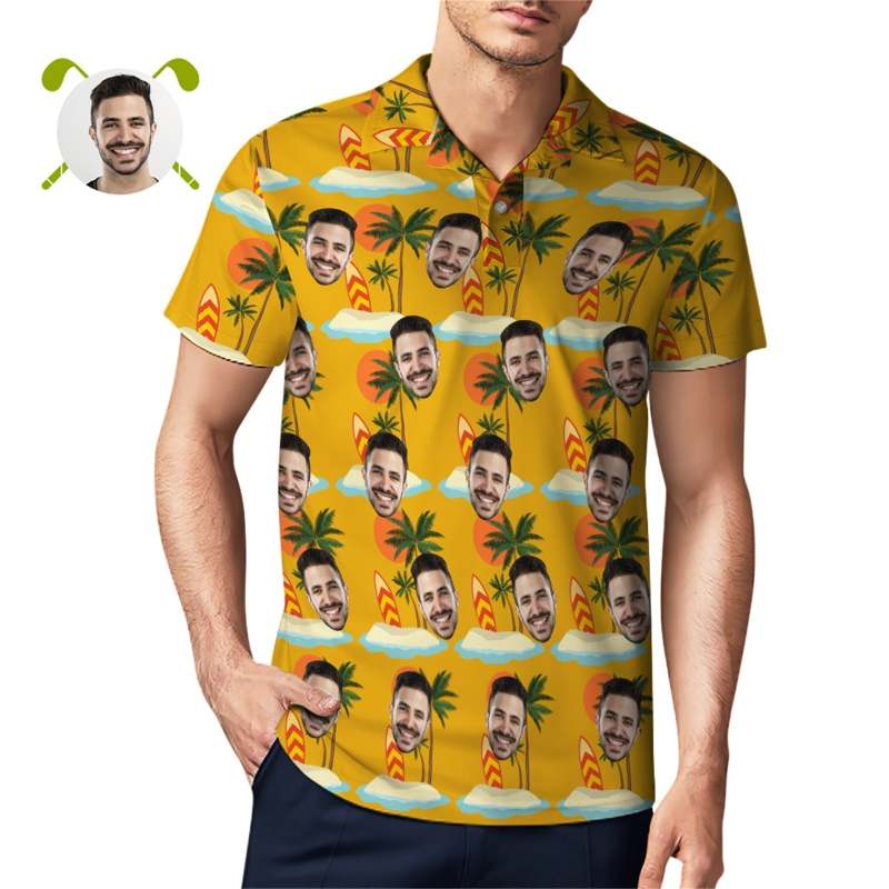 Custom Face Polo Shirt For Men Coconut Tree Beach Shirt Hawaiian Golf Shirts