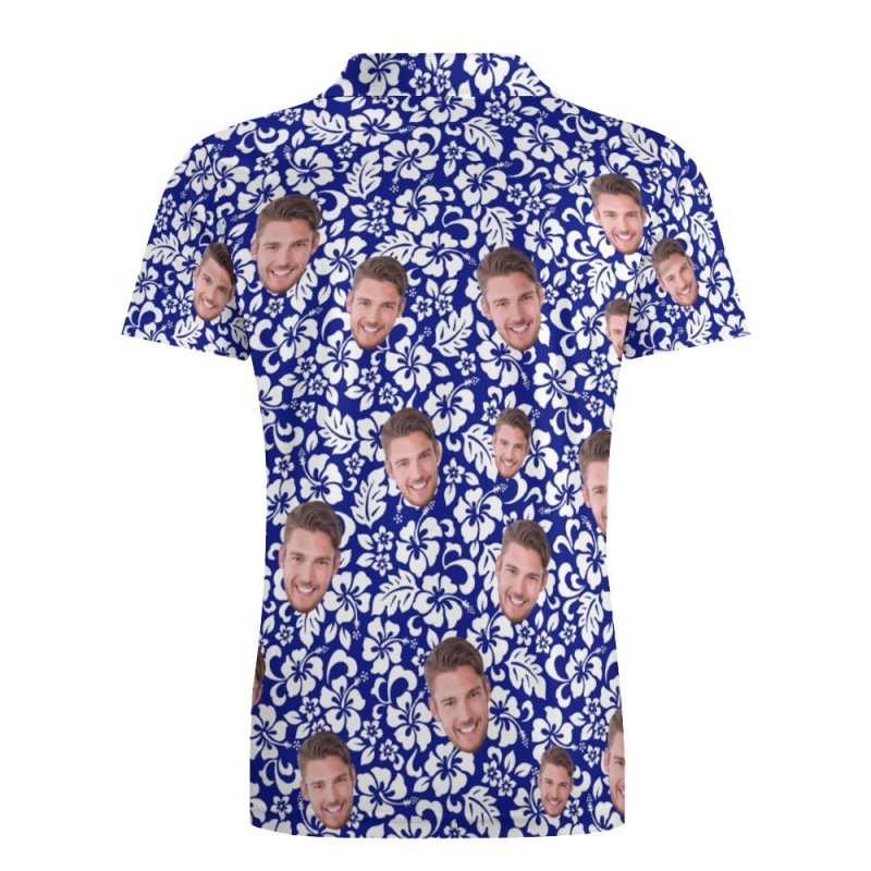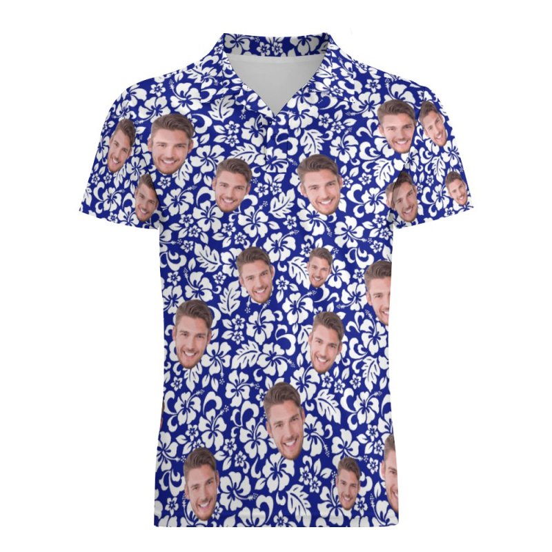 Custom Face Polo Shirt For Men Personalized Blue Hawaiian Golf Shirts