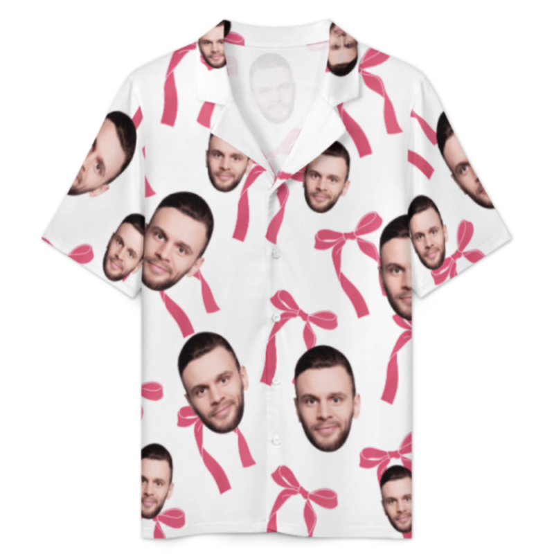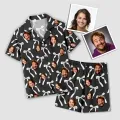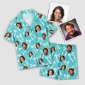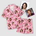 Custom Face Short Sleeve Pajamas Custom Bow Couple Gift Photo Pajamas Suit