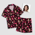 Custom Face Short Sleeve Pajamas Custom Red Heart Photo Pajamas Suit