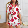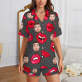 Custom Face Short Sleeve Pajamas Custom Red Lips Photo Pajamas Suit