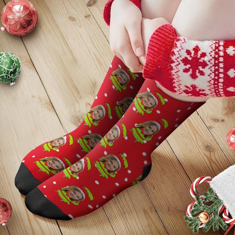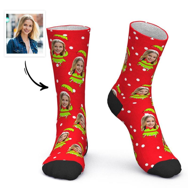 Custom Face Socks Personalised Photo Socks Christmas Gift - Christmas Elf