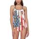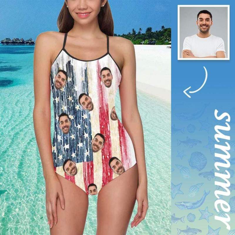 Custom Face Swimwear Women's Photo Slip One Piece Swimsuit- Artistic USA Flag