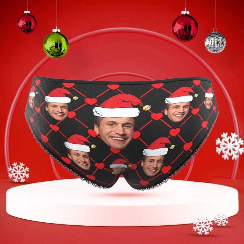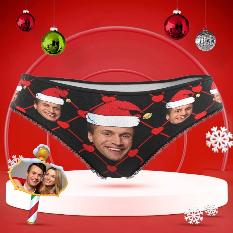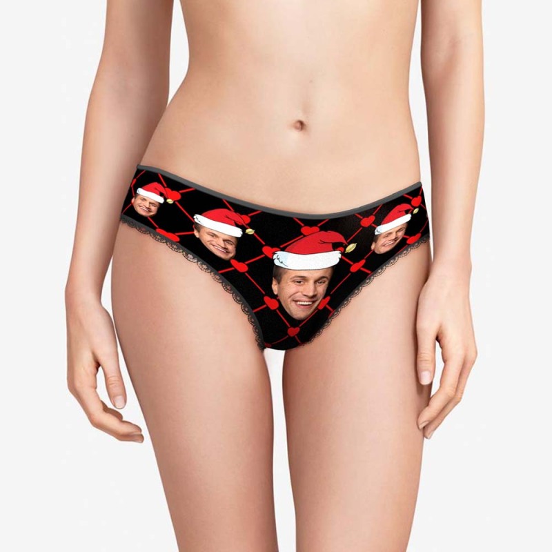 Custom Face Underwear with Boyfriend Picture Personalised Christmas Hat Pattern Women's Shorts